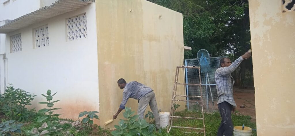 The veterinary doctor had advised us to paint the rooms freshly as there are always ticks inside the walls of buildings. It is not nice to expose ABC dogs to these ticks. So, the painters closed all cracks in the walls before painting. On the outside the rooms got a fresh look as well.