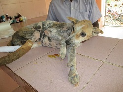 Our long time paralyzed old inmate, Jerry, suffering from a sudden skin problem. He needs washing, ointment and a lot of extra vitamins to get better.