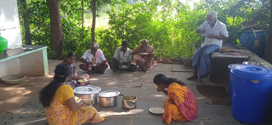 We have started on Saturday, November 23 – Sathya Sai Baba’s birthday. The breakfast will be prepared at the AHIMSA farm at Karunapalli, where the organic garden is and the large number of our rescued cattle. Behind this is the new wildlife rescue centre under construction. Some of the cattle herders need to walk a long way to come to work or to cut the cattle grass. Many times they bring no breakfast because it is not available in the house. They tend to share what is available which is also nice but as we have improved the feeding of all our animals this year, why leave the staff out?